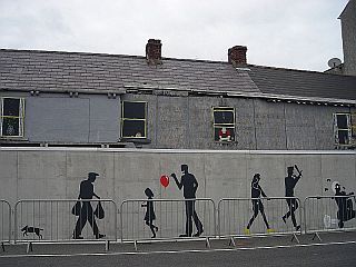 W Blackrock musialysmy sie zatrzymac bo to jest miasto z jajem. Co krok ciekawe grafitti, a to dziewczyna tanczaca flamenco, a to oparty o latarnie Lucky Luke. Z okien spogladaja wymalowane twarze i kocie pyszczki 😉 Wstapilysmy do rozkosznego charity shop z bogata kolekcja zdobionego recznie szkla; jako ze mam sklonnosc do kieliszkow zakupilam jeden przepiekny do wina wykonany w Rumunii.
