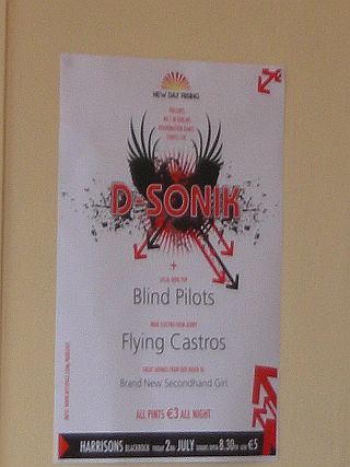 Jak informuje plakat mozna sie tam wybrac na impreze na ktorej zagraja Slepi Piloci i Latajacy Fidele, tudziez Calkiem Nowa Dziewczyna z Secondhandu.