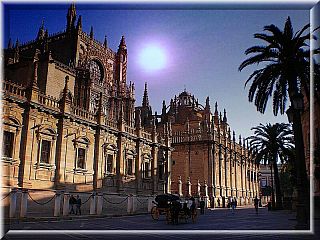 Chcialysmy go zwiedzic juz pierwszego dnia ale bylo za pozno, poszlysmy wiec na spacer po okolicy. Polecam wszystkim poszukanie zakwaterowania w samym starym centrum, w dzielnicy Santa Cruz gdzie znajduje sie miedzy innymi gotycka katedra i La Giralda. Podczas tego i kolejnych spacerow po Sewilli i innych miastach mialysmy okazje poobserwowac tubylcow i niestety musze przyznac racje Alex ze Hiszpanie poludniowi nie sa zbyt piekna nacja. Jesli ktos mysli ze po ulicach chodza Carmen pod reke z torreadorami jak z filmow to nie – kobiety sa raczej niskie, z duza glowa i pupa, panowie podobnie tylko zamiast pupy maja duzy brzuch. Nie krytykuje, obiektywnie stwierdzam. Co zdumiewalo mnie to starsze panie, wszystkie ubrane w tym samym stylu, niby elegancko w jasne spodnie w kantke, koszule i zakiet ale jakos tak strasznie staroswiecko, z obowiazkowymi krotkimi fryzurami w ksztalcie polakierowanych helmow.