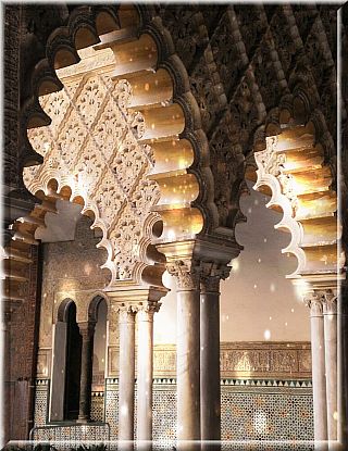 Sam Real Alcazar to jedno z najpiekniejszych dziel ludzkiej reki ktore w zyciu widzialam. Naprawde nie sposob opisac przepysznej ornamentyki i kunsztu z jakim wykonano te wszystkie zdobienia, zdawaloby sie ze nie ma w calym budynku gladkiego muru, wszystko pokryte jest delikatnymi mozaikami i stiukami. W najokazalszej chyba Sali Ambasadorow do ktorej prowadza wejscia o typowych dla islamu lukach podkowiastych warto zadrzec glowe by podziwiac wnetrze kopuly z pozlacanego drewna. Gdybym byla mieszkanka Sewilli chyba nie moglabym sie oprzec by codziennie nie przychodzic tam by na nowo zachwycac sie zacisznymi patio, dziedzincami w ktorych szmrze woda a promienie slonca gina miedzy marmurowymi arkadami by dac czlowiekowi troche wytchnienia w upale 🙂