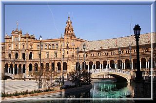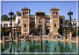 Plac znajduje sie na terenie parku Marii Luisy Orleanskiej w ktorym akurat odbywaly sie Targi Kultur czy cos w tym stylu, wystawiono stragany z jedzeniem i napitkiem oraz wyrobami pamiatkarskimi, ubraniami i bizuteria z przeroznych stron swiata. Bylo piwo polskie i irlandzkie, ponadto zauwazylam Polish Amber (bursztyn) reklamowy przez Audrey Hepburn, a raczej jej zdjecie, z doczepionymi do uszu kolczykami. Polecam powloczenie sie po parku, miesci on wiele pieknych budowli, miedzy innymi Muzeum Sztuki Ludowej Andaluzji i Muzeum Archeologiczne oraz wiele rzezb, fontann i altan. Isleta de los Patos to male jezioro zamieszkane przez kaczki i labedzie ktore glownie poleguja w altanie, obfotografowywane przez turystow.