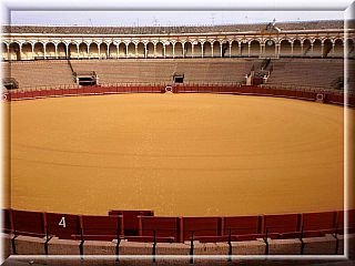 No i Sewilla to oczywiscie corrida, dla mnie zabawa absolutnie barbarzynska ale w koncu moze trzeba byc Hiszpanem by to czuc i kochac. Alex zaciagnela mnie na zwiedzanie areny Plaza de Toros de la Maestranza nalezaca do najstarszych w kraju. Wg pani przewodnik – najstarsza, najwspaniajsza i w ogole wow. Zaledwie tydzien wczesniej zakonczyl sie trwajacy od Wielkiej Nocy sezon walk. Zolc piasku pieknie kontrastuje z krwisto-czerwonym parkanem i blekitnym niebem ale wystarczy pomyslec o tych biednych bykach by miec dosyc tego widoku i ja osobiscie bije poklony przed parlamentem Katalonii ktory uchwalil zakaz korridy od 2012r.