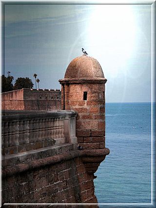 Ruina, zaniedbanie, rdza, bieda – to sie rzuca przede wszystkim w oczy. Budynki bez okiennic, puste, opuszczone, i to zaraz przy molo. Rozpadajace sie rudery. Kadyks wywarl na mnie tak przygnebiajace wrazenie ze nawet nie za bardzo pamietam jaka trasa szlysmy i co widzialysmy. Na pewno doszlysmy do starych murow z ktorych roztacza sie widok na zatoke. Wielkie kamienie u ich podnoza to siedlisko kotow ktore wygrzewaja sie na sloncu. Nieliczni wedkarze otoczeni sa przez te stworzonka ktore wytrwale czekaja na kawalek rybki, choc czasem nadfruwa paskudna mewa i kradnie zdobycz.