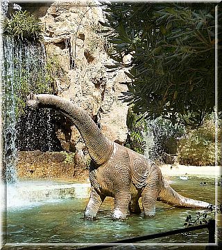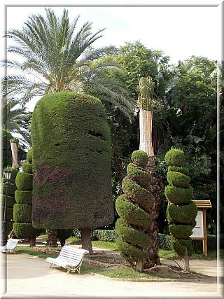 Troche zabawy mialysmy w Parque Genowes, ulubionym miejscu kadyskich BIHABOW z pociechami. Bo oto wsrod ciekawie przystrzyzonych drzewek wygladajacyc jak Magnum na patyku dostrzeglysmy…dinozaury i inne zaury, ustawione w krzakach i kolo sztucznego wodospadu ku uciesze dzieci i naszej. Przynajmniej mamy fajne zdjecia w szponach gada, a co 😉