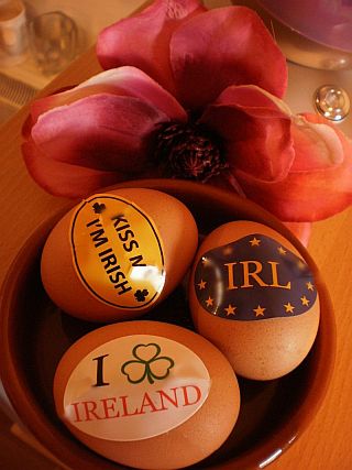 Dopiero wczoraj sobie przypomnialam ze wypadaloby jajka kupic, a dzis rano ze wypadaloby je ugotowac na twardo i ozdobic. Tylko czym?