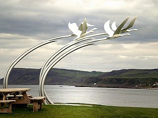 Rzezba przedstawiajaca czworo dzieci Lira zakletych przez macoche w labedzie – stara celtycka legenda.
