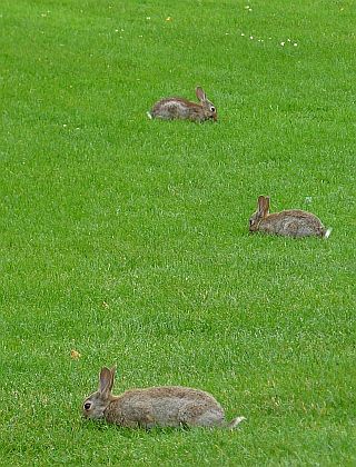 A rano otwieram oczy a tu piekne slonce! Wygladam przez okno a tu niebieskie niebo z niewielkimi tylko chmurkami, w sasiednim ogrodku kot obok figurek lezacych saren. Potem zorientowalysmy sie ze przy kazdym domku cos stoi, a to osiolek, a to krasnal, a to zaba. Kicz ale bardzo na miejscu i jakos pasujacy do miasta.