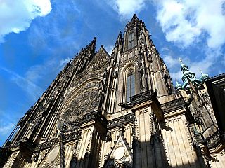 Weszlysmy na maly dziedziniec a potem na drugi gdzie po prostu wyrosla przed nami Katedra Sw Wita, grozna, wyniosla, o strzelistych gotyckich iglicach. Z gory obserwowaly nas gargulce.