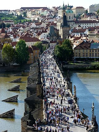 Tymczasem wiec wrocmy do naszego powrotu z zamku…Oczywiscie przeszlysmy przez Most Karola, rownie slynny jak Ponte Vecchio we Florencji czy weneckie Rialto. Niestety odwiedzaja go tlumnie zarowno turysci jak i mieszkancy wiec cale jego piekno widac jedynie na pocztowkach. Kiedy kolejny raz bede w Pradze – poswiece sie i przyjde tam bladym switem 🙂