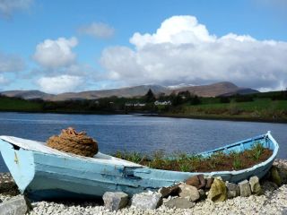Jazda zajela nam dokladnie cztery godzinyi istotnie pogoda byla rewelacyjna, tylko pare razy natkelysmy sie po drodze na drobny deszczyk i raz na grad, ale w Achill to juz tylko slonce i przepiekne, niebieskie niebo z bialymi chmurkami poprzecinane sladami przelatujacych samolotow.