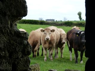 Z zamku niewiele sie zachowalo i kiedy juz postanowilysmy wracac, dostrzeglysmy idace polem krowy ktory zauwazywszy nas, zaczely szybkim krokiem i z obledem w oczach zblizac sie. Naprawde z obledem w oczach, szczegolnie jedna prowodyrka, czarna przywodczyni stada. Krow bylo ze trzydziesci a nas tylko trzy, wiec schowalysmy sie do zamku odgrodzone barierka i czekalysmy co bedzie dalej.