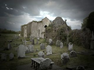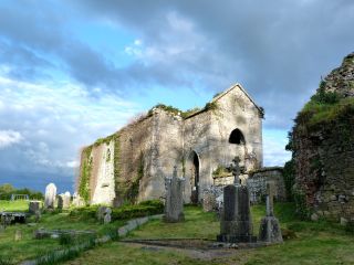 Po przezyciach ukoilysmy nerwy bailey’s coffee w miejscowym barze i udalysmy sie w kierunku ostatnich ruin tego dnia, Dunleckny Church. Koscioly byly dwa i wyglada na to ze jeden sie zaczal rozlatywac wiec zaczeto obok stawiac drugi. Ciezko dostrzec to miejsce z drogi bo jest zasloniete domkami. Mieszkancy susza pranie w ogrodkach z widokiem na cmentarz.