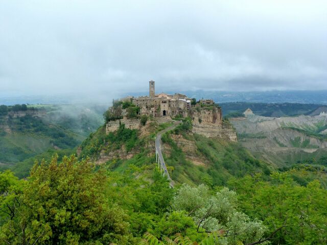 Lazio – to tam wlasnie czekal na mnie jeden z najpiekniejszych widokow jakie w zyciu widzialam: ogladane na tle gor „umierajace miasto” Civita do Bagnoregio, wygladajace jak cos nieprawdziwego co za chwile zniknie.