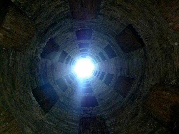 Weszlysmy do studni Sw Patryka ktora zostala zbudowana w bardzo przemyslny sposob, posiada dwa rzedy schodow, jeden pod drugim, co powodowalo ze jeden woz z woda mogl zjezdzac w dol a drugi jednoczesnie wjezdzac w przeciwnym kierunku i oba nigdy sie nie spotkaly.