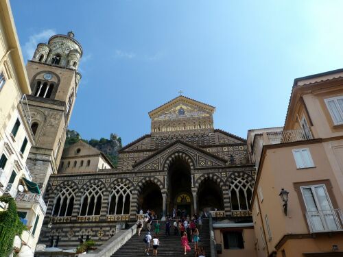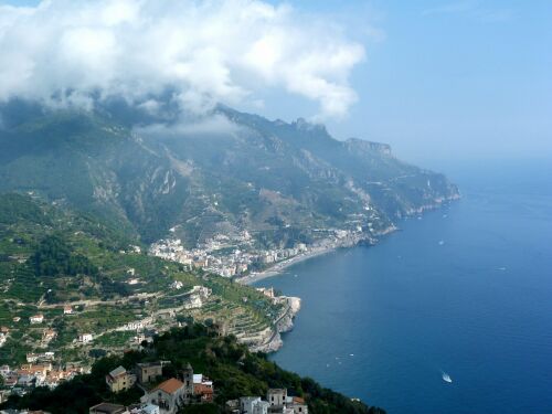 A teraz ciut historii – na wybrzezu Amalfi budowali niegdys swe wille zamozni Rzymianie, rejon stal sie w X wieku preznym osrodkiem politycznym i handlowym, majacym wlasna placowke w Konstantynopolu, uklady z Arabami i Egiptem. Potem wkroczyli na arene Normanie i wszystko sie skonczylo…za to wybrzeze odzyskalo swoj blask i znaczenie w XX wieku dzieki turystyce. Miasto Amalfi od ktorego wziela nazwa cala okolica to glowny punkt przesiadkowy – stamtad mozna sie dostac dalej z Sorrento czy Positano do Ravello, Bomerano, Salerno i innych miejscowosci.