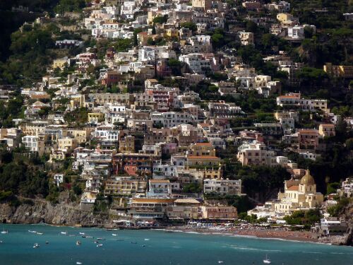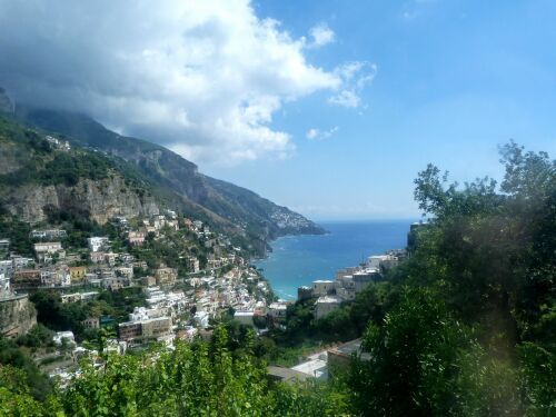 Jednym z najbardziej znanych punktow wybrzeza jest Positano ktore z daleka wyglada jak dwa trojkaty. Na poczatku XX wieku byla to biedna wioska rybacka do ktorej w latach 50-tych zaczely naplywac tlumy po tym jak pisarze tacy jak John Steinbeck zaczeli ja popularyzowac w prasie. Nie ma to jak dobry PR. Mnie Positano kojarzylo sie zawsze najbardziej z filmem „Under the Tuscan Sun” i slynna scena kiedy to bohaterka stoi na nabrzezu ktore obryzguje fala.