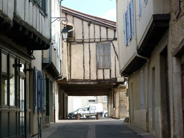 Niedaleko polozone jest moje ulubione Soreze – prawdziwa perelka. Jest tam mnostwo pieknych budynkow w charakterystycznym stylu – pietro domu jest zawieszone nad parterem na filarach. Nie do konca wiadomo czemu to mialo sluzyc, wyczytalam ze moglo chodzic o wylewane z gory nieczystosci (zeby wychodzacemu przez drzwi na glowe nie polecialo 😉 lub po prostu o to by zwiekszyc przestrzen na ulicy.