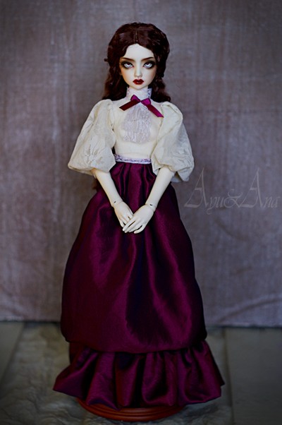 Wszystko tragiczne: kolory, to cos pod szyja, buciki z wystajacymi figlarnie paluszkami, ciezki ciemny makijaz do tego. Gdyby odpruc kokardke, zmienic obuwie i torebke to jak znalazl guwernantka dziewietnastowieczna: