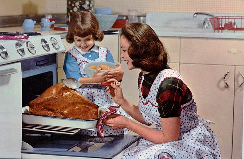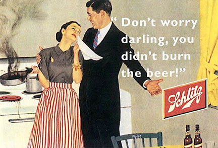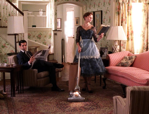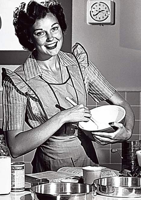 Oslawiony domek na przedmiesciach, z nowoczesna kuchnia – sanktuarium kobiecym – wyposazona w najnowsze zdobycze techniki a wiec zamrazarke, zmywarke, lodowke itp, byl najwiekszym marzeniem. Pani domu robila sniadanie, calowala meza na do widzenia kiedy ten szedl do pracy, odwozila dzieci do szkoly, z usmiechem na twarzy odkurzala, piekla, zmieniala posciel, froterowala podlogi – wszystko w pieknej fryzurze i pelnym makijazu – chodzila czasem na jakies kursy haftu czy garncarstwa i spotykala sie na ploteczki z sasiadkami. ” Z duma wpisywaly w rubryce zawod- gospodyni domowa„