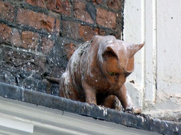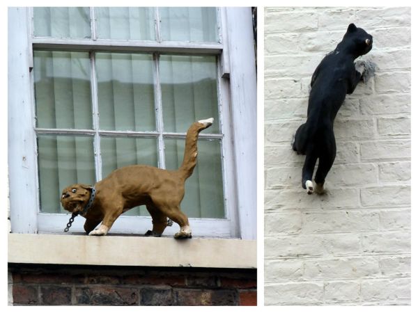 Jednym slowem – historia jakich wiele 😉 ale co odroznia York od innych miast o podobnej przeszlosci to wszechobecne koty. Bo w Yorku kot to symbol szczescia – zwlaszcza czarny – a jego sylwetki od dawien dawna mocowano na scianach budynkow by przepedzac pecha. Te ktore przetrwaly licza sobie czasem i 200 lat choc wiadomo ze tradycja trwa od czasow sredniowiecza. Kot byl sprzymierzencem czlowieka bo przeganial myszy i szczury odpowiedzialne za przenoszenie przeroznych zarazkow i oczywiscie za podjadanie zapasow.
