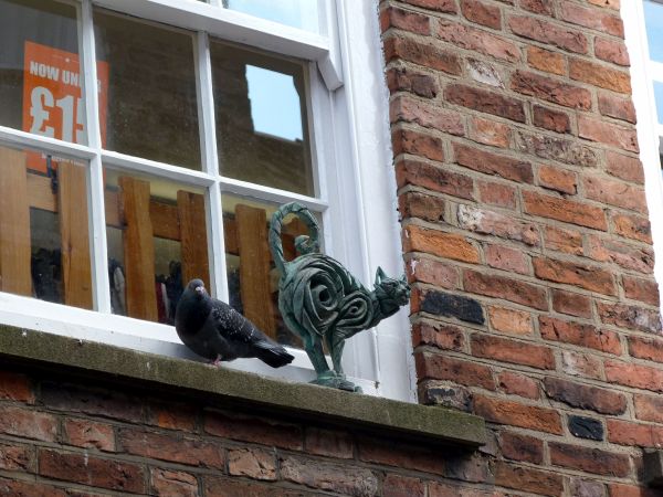 Aby znalezc kota nr 9 musimy isc za rzeke, ulicami Fossgate i Walmgate. Fossgate byla kiedys targowiskiem rybnym a pozniej przeobrazila sie w jedna z elegantszych ulic Yorku, gdzie w 1911 roku otwarto pierwsze w miescie kino. Przyznac musze ze okolice rzeczki sa bardzo romantyczne, szczegolnie wiosna kiedy kwitna drzewa. Rozgladajmy sie za rzezba innego wiekszego zwierzecia – nasz kot jest tuz obok.