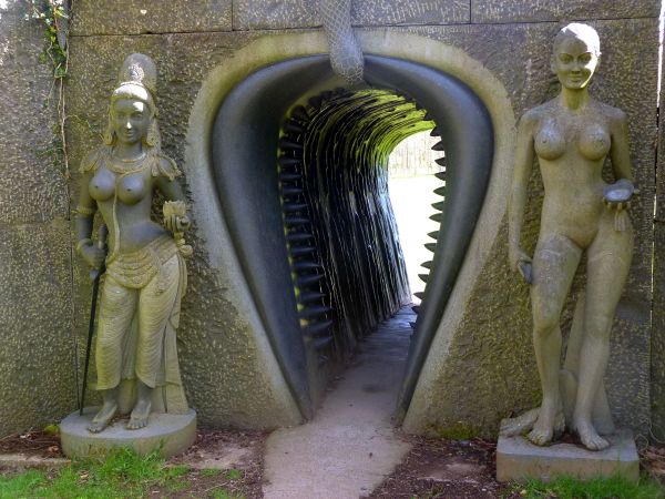 Na 22 akrach parku (do ktorego wchodzi sie przez zebata wagine) znajduja sie 22 granitowe posagi ukazujace indyjskie bostwa i boginie o ktorych mi niewiele wiadomo. Rozpoznalam jedynie chlopca z glowa slonia Ganesh ktory usuwa przeszkody i zapewnia powodzenie w roznych przedsiewzieciach, oraz oczywiscie Kali, bogini smierci z kilkoma parami rak (sie czlowiek naczytal Tomka Wilmowskiego na tropach Yeti 😉