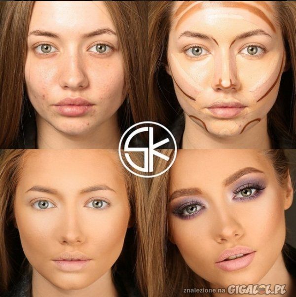 A moje drogie konturowanie mozna przeprowadzac – jak sie naczytalam – na mokro i na sucho. Cala zabawa polega na wydaniu potrojnej ilosci kasy na rozne podklady (metoda na mokro) i bronzery (na sucho) bo oczywiscie trzeba miec 3 rozne odcienie, Konturowanie przeprowadza sie inaczej w zaleznosci od ksztaltu twarzy jaki mamy, by ja doprowadzic do IDEALU czy do OWALU.