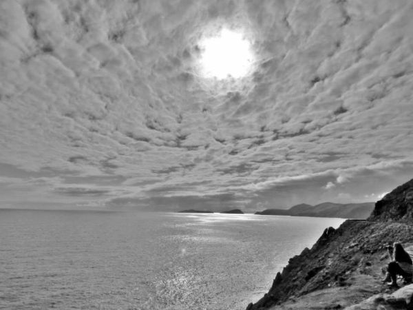 Wreszcie ruszylysmy na objazd polwyspu podziwiajac widoki. Na niebie chmury ukladaly sie w przedziwne konstelacje i im blizej do zachodu slonca tym bardziej robillo sie nie czerwono a srebrzyscie. Jest takie miejce na Slea Head gdzie wciaz przesiaduja mewy i zebrza o jedzenie – znow deja vue.
