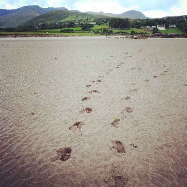 Pozniej zachcialo sie nam plazy wiec zjechalysmy na absolutnie pusta i dluga piaszczysta plaze gdzies po drodze. Bylysmy jedynymi i pierwszymi osobami po odplywie co widac bylo po braku sladow. A w drodze do Killarnej zatrzymalysmy sie w sliczym i kolorowym miasteczku Cloghane, a dokladnie w uroczym barze O’Donnells na baileys coffee.