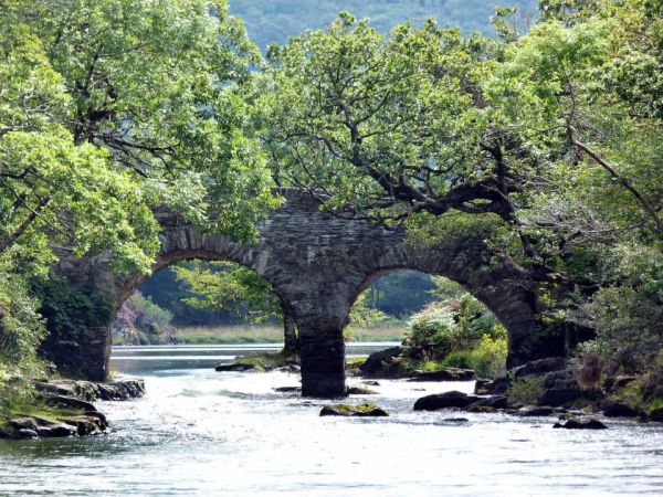 W Parku Narodowym Killarney celem bylo miesce zwane Ladies View, a to dlatego ze podziwiala go sama krolowa Viktoria podczas odwiedzin w roku 1861. Ale wczesniej zatrzymalysmy sie przy drogowskazie na stare mosty przy The Meeting of the Waters. Woda w jeziorze byla turkusowa jak ta na Malcie. Poszlysmy na okolo godzinny spacerek do miejsca gdzie pieknie widac oba mosty oraz gdzie spotykaja sie wody dwoch jezior.