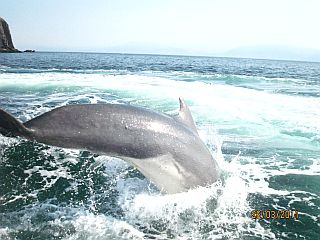 Oczywiscie wykupilysmy bilety na godzinny rejs majacy na celu zobaczenie delfina i owszem, pokazal sie ale jakos niemrawie. Bo pewnie i staruszek juz i mu sie nie chce popisywac, a moze mial humory. Ale coz, to nie delfinarium ani cyrk, a poza tym sam rejs jest ciekawy i tak naprawde bardziej ekscytowalam sie srebrzystymi falami i szumem fal niz pletwa delfina wystajaca gdzieniegdzie z wody.
