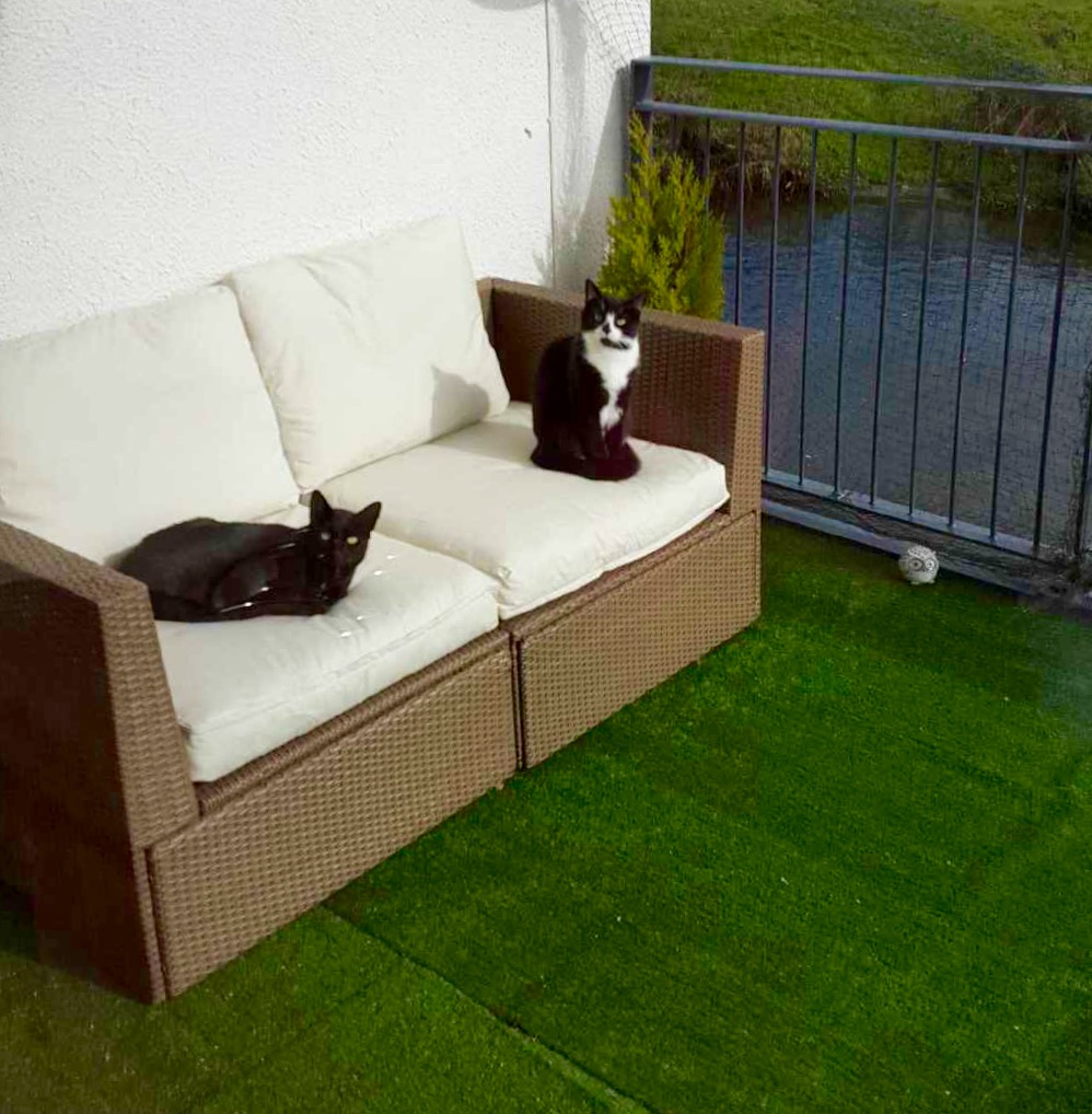 Za jakis czas znow musielismy podjechac do Ikei bo pokazaly sie meble ogrodowo/balkonowe ktore chcialam kupic. Na drugi dzien byly wyprzedane wiec udalo sie. Nie kupilam tylko stolika a trzeba bylo. Na razie mam za to stolik zastepczy. Fotele sa bardzo wygodne, mozna je ulozyc osobno albo razem jako sofe. Koty od razu polubily 😉