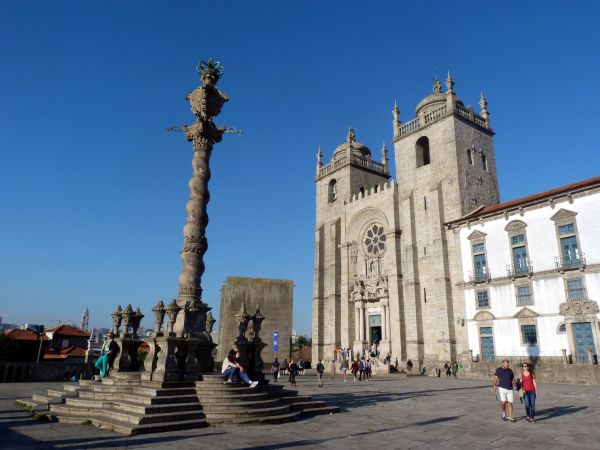Katedra powstala w XII wieku jako obronny kosciol romanski, pozniej przebudowany w stylu gotyckim. Wieczorem piekny kruzganek ozdobiony plytkami azulejos jest romantycznie podswietlony a z dziedzinca rozciaga sie cudowny widok na dzielnice.