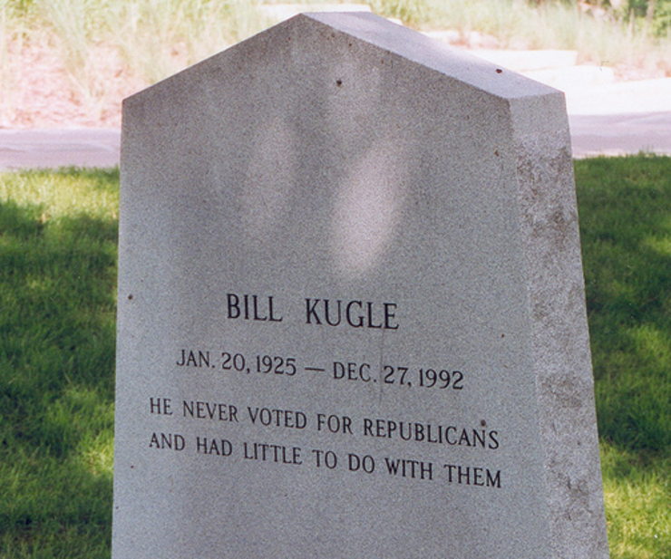 Na nagrobku mozna wyrazic swe poglady polityczne jak Bill Kugle ktory nigdy nie glosowal na republikanow i nie mial z nimi wiele do czynienia.
