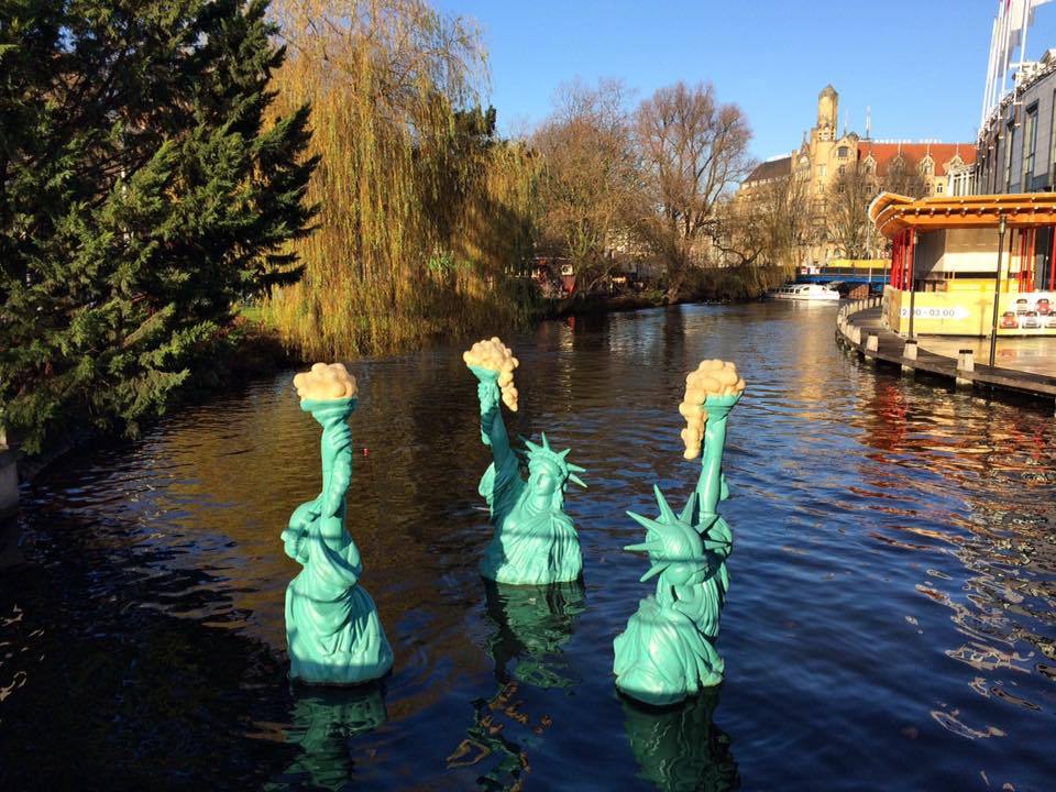Symbol Holandii – tulipany, tu w formie instalacji artystycznej na jednym z kanalow.