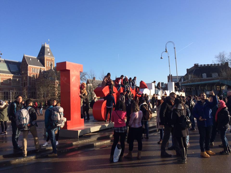 Holendrzy nie przejmuja sie strasznie swietami wiec tylko instytucje typu bank czy poczta byly zamkniete 25go. Wtedy tez na miescie bylo w miare pustawo, ale juz 26go zaczelo byc tlumnie. Sprobujcie sobie zrobic zdjecie przy slynnym napisie I AMsterdam zlokalizowanym kolo muzeum Van Gogha…nie da sie bo jest oblegany przez turystow wlazacych na niego jak malpy. Do muzeum Anne Frank kolejka na kilka godzin stania. Ale juz np w dzielnicy Jordaan cicho i niewiele osob sie kreci. Nie planowalysmy zadnych wizyt w muzeach tym razem, poszlysmy tylko do muzeum kotow ktore jest bardziej wystawa dziel o kociej tematyce niz takim typowym muzeum. Miesci sie w XVIII kamienicy przy kanale i oprocz przeroznych obrazow, plakatow i rzezb z kotem w roli glownej mozna zobaczyc jak kiedys mieszkalo bagate panstwo. Wlasciciele zreszta wciaz tam rezyduja na wyzszych pietrach z piecioma prawdziwymi kotami. Mialysmy zamiar odwiedzic tez kocia kawiarnie ale byla nieczynna az do srody kiedy juz wracalysmy. Kupilysmy rowniez rejs po kanalach, zarowno relaksujacy jak i edukacyjny. Specjalnie nie rozbijalsmy sie po restauracjach ale warto wspomniec o fajnej miejscowce, restauracji typu self service bufet mieszczacej sie na ostatnim pietrze amsterdamskiej biblioteki. Widoki z niej przecudne a jedzenie jest swietne i niedrogie bo to knajpa dla studentow. Nie sa nastawieni na turystow i nawet opisy dan sa tylko w holenderskim jezyku. Na szczescie wszyscy Amsterdamczycy ( a pewnie i Holendrzy) mowia po angielsku. Jezyk holenderski jest raczej harczacy i niezbyt przyjemny w brzmieniu. W jednej z kawiarni spytalam kelnerke o haslo do wi-fi i ona na to: chrgahcragch. Zobaczyla moja mine i dodala: lepiej to napisze…
