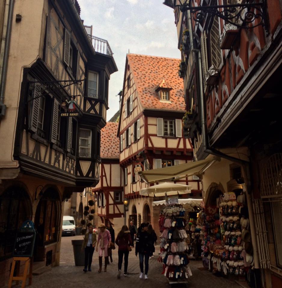 Colmar wyglada bardzo podobnie do Yorku badz Chester z powodu takiej samej architektury, jest tylko bardziej kolorowo. Atmosfera przypomina jednak Brugie, pewnie z powodu kanalow. Koslawe kamienice pochodzace sprzed setek lat sa bardzo zadbane, a sklepy i butiki sa tak umiejetnie wkomponowane w krajobraz ze nie psuja widokow. Turysci w ilosci niewielkiej placza sie po zaulkach probujac sprzedawanych wszedzie, przepieknie wykonanych ciasteczek, a w restauracjach podlewaja obiad doskonalym lokalnym alzackim winem.