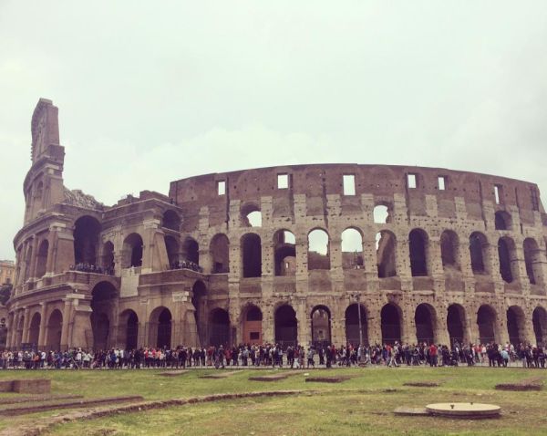 Pierwszy poranek spędziłam z przewodnikiem, rodowitą Rzymianką Eleonorą. Był to prezent od firmy z ktorą służbowo współpracuję. Spotkałyśmy się przy Koloseum, którego oryginalna nazwa to Amfiteatr Flawiuszów. Został wzniesiony przez cesarza Wespazjana na terenie który kiedyś zajmował pałac Nerona. Powstał w latach 70-72 i służył głównie do urządzania bezpłatnych widowisk typu walki gladiatorów czy egzekucje skazańców. Do środka prowadziło 80 wejśc i każdy z około 60.000 widzów dokładnie wiedział którą bramą ma wejśc i gdzie usiąść, dzięki czemu cała procedura zajmowała tylko pół godziny. Na dole siedzieli zamożni arystokraci, wyżej ważne osoby w mieście, bogacze, potem wojskowi i tak dalej, im wyżej tym mniej dostojne jednostki. Na samej górze – kobiety i niewolnicy…Były jednakże grupy które miały zakaz wstępu do Koloseum, a mianowicie grabarze, aktorzy (?) byli gladiatorzy.