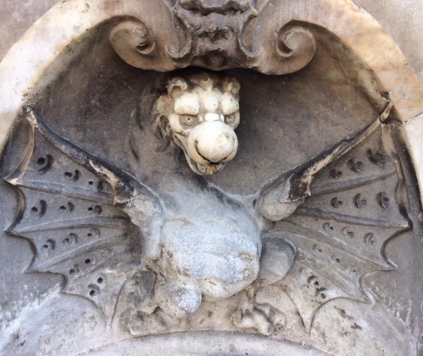 Wszyscy pewnie wiedzą że w roku 64 najsłynniejszy pożar Rzymu (opisany między innymi w Quo Vadis) zniszczył tę dzielnicę doszczętnie. O wzniecenie ognia cesarz Neron oskarżał chrześcijan, wyznawców młodej religii która zagnieździla się właśnie tam i rozprzestrzeniała w każdą stronę. Trastevere rozkwitło między XI a XIII wiekiem dzięki kapitałowi mieszkających tam Żydów, ale to skończyło się kiedy przesiedlono ich do getta i zaczęto represje. Podobał mi sie główny plac Piazza Santa Maria, kaplica z bardzo piękną średniowieczną mozaiką oraz kościół imienia Świetej Cecyli, męczennicy chrześcijańskiej. Brud, bazgroły na murach, śmieci i żebracy występują tam w ilości dużo większej niż po drugiej stronie rzeki. O, i jeszcze ten smoczek bardzo przypadł mi do gustu.
