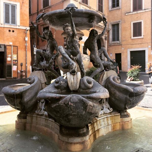 Fontanna Żółwi wzięła swą nazwę oczywiście od żółwi które usiłują zejść z umieszczonej ponad wodą misy, choć zwierzątka zostały tam umieszczone jakieś 80 lat po jej powstaniu. Miała być ona postawiona zupełnie gdzie indziej ale zachwycony nią bogacz Muzio Mattei uparł się by ją mieć przy placu przy którym mieszkał. W zamian zaoferował wybrukowanie placu na własny koszt oraz utrzymywanie fontanny w czystości.