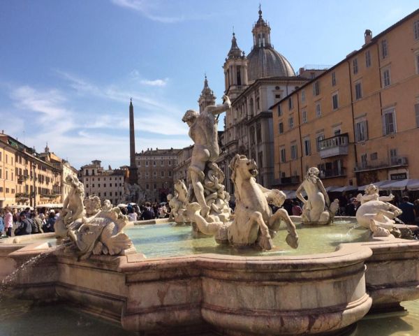 Obaj panowie zmienili oblicze Rzymu tworząc w okresie baroku. Gianlorenzo Bernini był nie tylko rzeźbiarzem ale i architektem jak i Borromini. Choć obydwaj byli równie dobrzy w swej sztuce, Bernini dostawał więcej zleceń i wybijał sie ponad rywala, przez co ów stawał się coraz bardziej sfrustrowany. Może do niepopularności Borrominiego przyczynił się jego temperament i ekscentryzm. A co ma z tym wspólnego Piazza Navona? Otóż jeden z budynków przy placu, kosciól Sw Agnieszki, to praca Borrominiego, a centralna fontanna to dzieło Berniniego. Według legendy Bernini zaprojektował fontanne tak by wyśmiać robotę rywala. Jedna z postaci wygląda bowiem jakby miała chronić się przed upadającym budynkiem, a inna ma zasłonietą twarz by go nie oglądać.