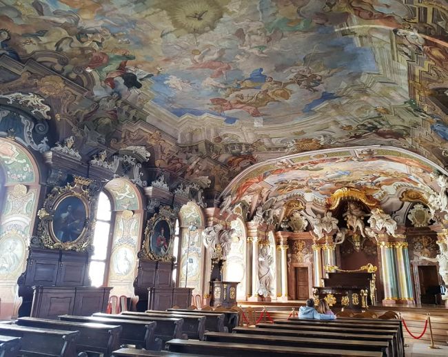 Nie był w planie ale pan kierowca namówił mnie i bardzo dobrze. Wykupiłam bilet na zwiedzenie dwóch hal, Auli Lepoldina i Wieży Matematycznej (ze względu na taras widokowy). Aula Leopoldina to rzyg barokiem, chyba bardziej barokowego obiektu nie widziałam, no może oprócz Wieskirche w Bawarii. Aula jest tak bogato zdobiona że oczy bolą, ale na swój sposób to fascynujące i warto zobaczyć bo robi wrażenie. Wieża to jak wspomniałam dla ładnego widoku.