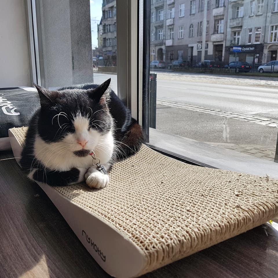 Otworzyła się na parę tygodni przed moim przyjazdem, co za traf! W lokalu są na razie trzy kotki, docelowo ma być pięć. Kotki ze schronisk, jeden po przejściach, dobrze że znalazły bezpieczne miejsce, widać że są szczęśliwe. Kawiarni trochę brakuje do ideału ale hej, dopiero zaczynają. Panie obsługujące są bardzo miłe i oczywiście zakochane w kotach. Spędziłam tam ponad godzinę, jak każda kocia kawiarnia to bardzo relaksujące miejsce