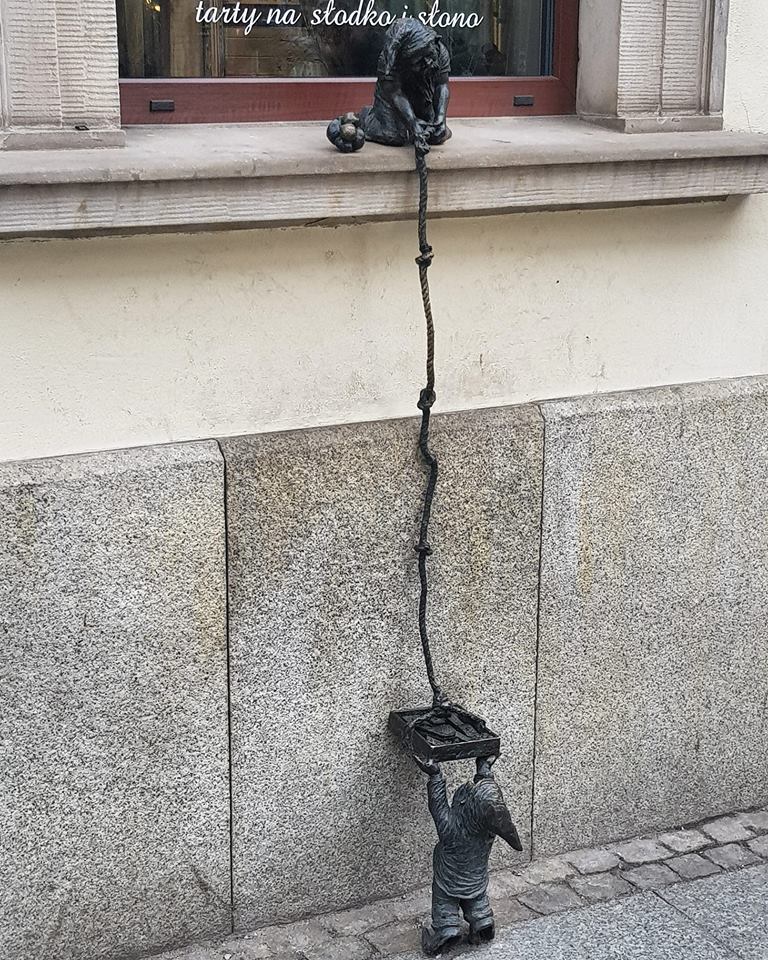 York ma swoje koty których szuka się z mapką, a Wrocław ma krasnoludki z brązu których jest już ponad 300! W latach 80tych XX wieku na murach miasta zaczęły pojawiać się malunki krasnali, wykonywane przez ruch Pomarańczowa Alternatywa. W ten sposób ruch protestował przeciw rządom komunistycznym. Ktoś wpadł na pomysł by na mieście postawić figurki skrzatów, i tak się zaczęło. Każdy ma swoje imię, są przedstawiciele różnych zawodów czy po prostu symbolizują jakąś cechę charakteru, np lenistwo. Bardzo fajna zabawa, jak się komuś chce można zgarnąć mapkę i poszukać wszystkie.