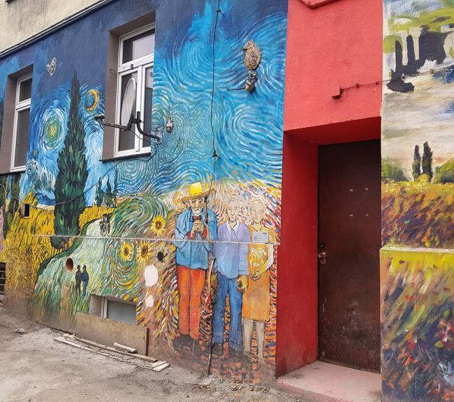 Uwielbiam sztukę uliczną, graffiti i murale. Na ulicy Roosevelta (od Jedności) mieszczą sie dość zaniedbane kamienice i podwórka które raczej odstręczają od spacerów, z wyjątkiem jednego. Artyści z pomocą mieszkańców przekształcili 1200 m2 paskudnego muru w dzieło sztuki, połaczenie murali z ceramiką. Malunki przedstawiają między innymi postaci historyczne, starożytny Egipt, dzieła Fridy Kahlo, Wyspiańskiego, Chagalla i Klimta. W żadnym miejscu we Wrocławiu nie zrobiłam tylu zdjęć. Mieszkańcy budynku często zagadują do odwiedzających i opowiadają o inspiracjach dla projektu. Zachwycił się nim nawet reżyser Wim Wenders. Polecam bardzo.
