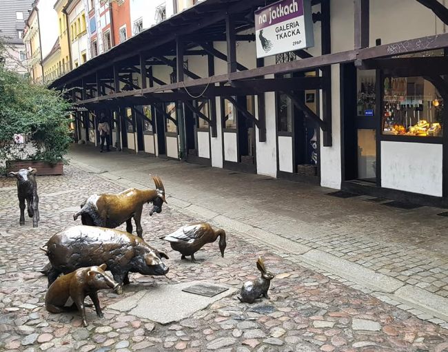 W centrum stoi okazały Ratusz, zabytek którego najstarsz część powstała w 1299 roku, oraz Sukiennice z malowniczymi przejściami. Rynek jest miejscem dla wszelkiego rodzaju performerów oraz punktem spotkań mieszkańców i turystów. Tam też znajduje się słynna Vega, pierwsza w Polsce, otwarta w 1987 roku restauracja stricte wegetariańska, a teraz już wyłacznie wegańska, gdzie chciałam iść i też się odbiłam od drzwi (zapraszamy po świętach).