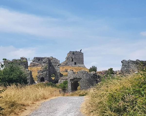 O rzut kamieniem od Emo znajdują sie moje ulubione „ruiny” które odwiedzam zawsze kiedy tamtęty przejeżdżam – Rock of Dunamase. Pochodzenie i wiek tego fortu jest zagadką: w II wieku grecki kartograf Ptolomeusz wspomina o miejscu zwanym Dunum ale nie ma dowodów że to właśnie Dunamase. Na 100% można powiedziec że twierdza istniała w IX wieku i wtedy splądrowali ją Wikingowie. W XII wieku przeszła w ręce Normanów a później irlandzkich lordów, ale nie była przez nich zamieszkiwana. Budowla popadała w ruinę i w stanie obecnym z jej prawdopodobnego kształtu dużo nie zostało, ale wygląda bardzo malowniczo i ma jakąś aurę tajemniczości. Kiedy byłam tam pierwszy raz nie było żadych zwiedzających, i przyznam że czułam coś niesamowitego wkoło siebie. To było bardzo dziwne uczucie, ale nie nieprzyjemne. Teraz wydaje mi się że podobne doznania mogła mieć bohaterka Outlandera kiedy spacerowała w Szkocji między starymi głazami, a kiedy ich dotknęła przeniosła się do XVII wieku:) Od tamtej pory nie udało mi się ponownie przebywać tam samotnie ale ciągle mam nadzieję to powtórzyć. Ale kamieni macać nie będę, za dobrze mi w czasach obecnych by się przenosić do przeszłości (no i gdzie gwarancja że Jamie Fraser tam będzie 😉