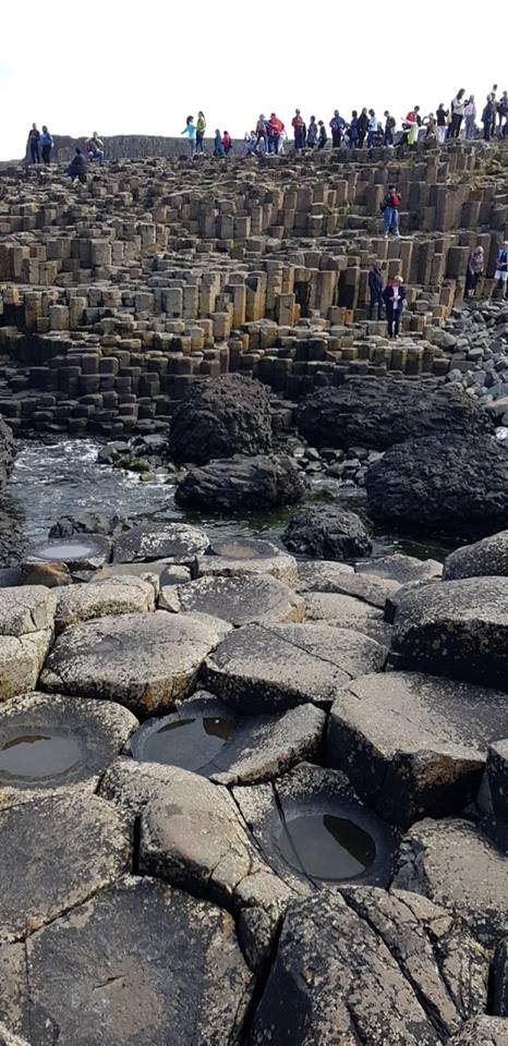 Na szczęście Giant’s Causeway w GOT nie wystąpił, zwiedzających jest sporo ale nie za dużo, do tego teren jest ogromny i jak wszyscy tłoczą sie na dole na kamorach, to cały długi szlak górą jest prawie pusty. Jeśli znacie jakiegoś geologa to przywieźcie go/ją właśnie tam a dostanie orgazmu. Kolumny bazaltowe w ilości około 40.000 uformowały się podczas erupcji wulkanicznej 50-60 mln lat temu. Rzecz jasna jest i legenda, mianowicie miała to być droga jaką zbudował sobie olbrzym Finn by suchą nogą przejsć do Szkocji.