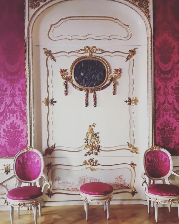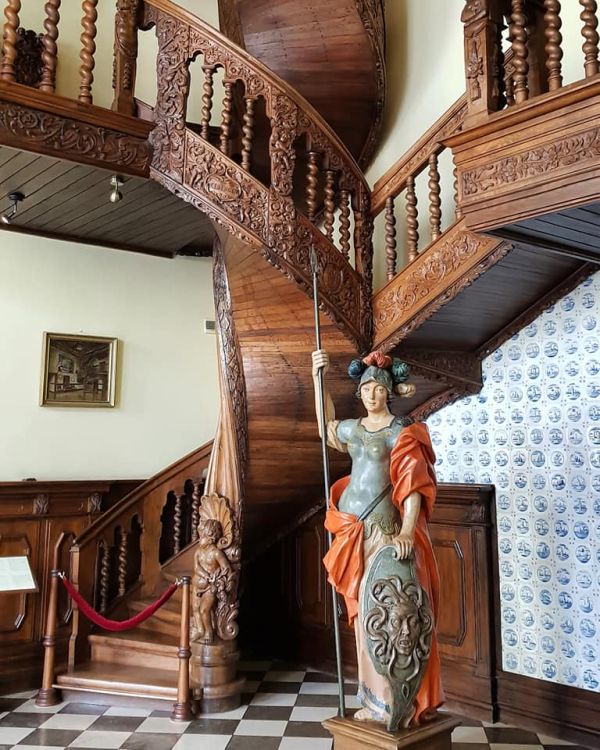 Dekoracje są dość eklektyczne i zaskakujące, szczególną uwagę przyciągają kręcone schody oraz niezwykły kaflowy piec mierzący 11 metrów.