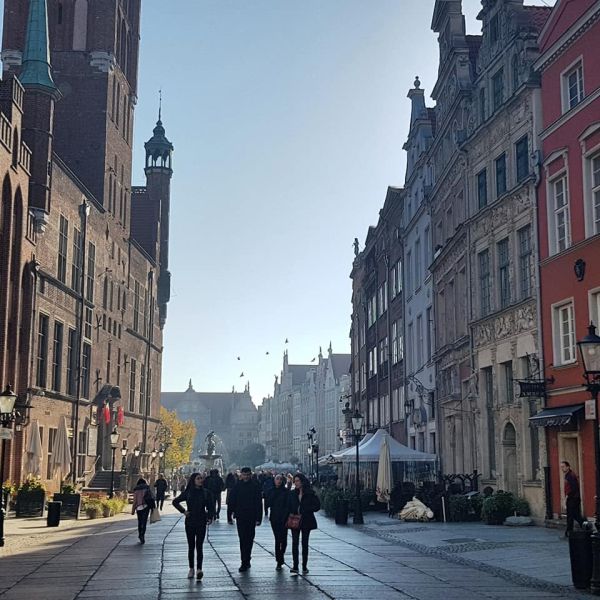 Odbudowane Stare Miasto ma inny układ niż np to w Krakowie czy Wrocławiu – tamte tereny były pod wpływem renesansu i sercem jest rynek – kwadratowy bądź prostokątny plac. Gdańsk to kilka głównych ulic biegnących od rzeki w głąb, z których najważniejsza i najładniejsza to Długi Targ. Mieszkałam w kamienicy na Powroźniczej, dosłownie sekundę od Długiego Targu.